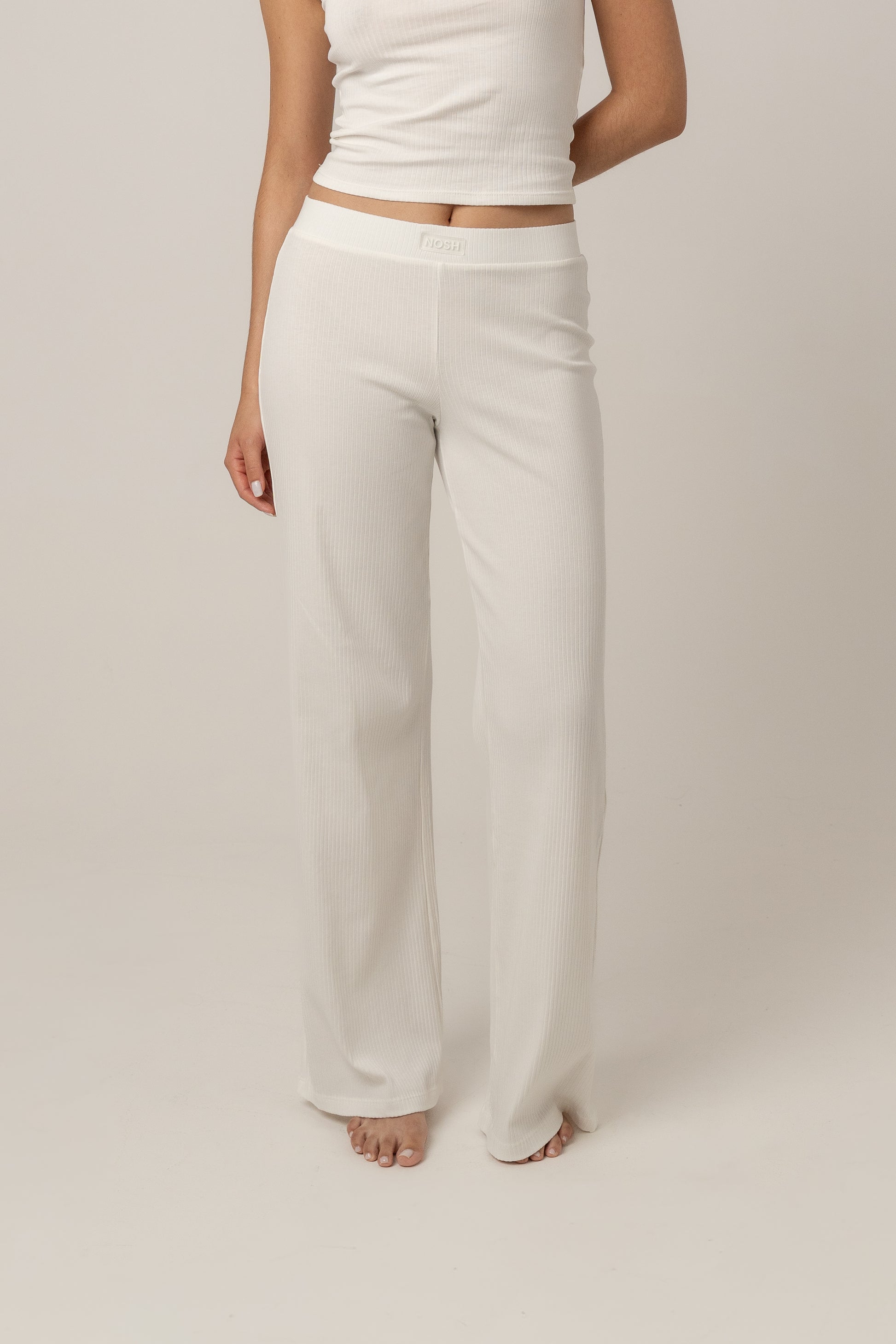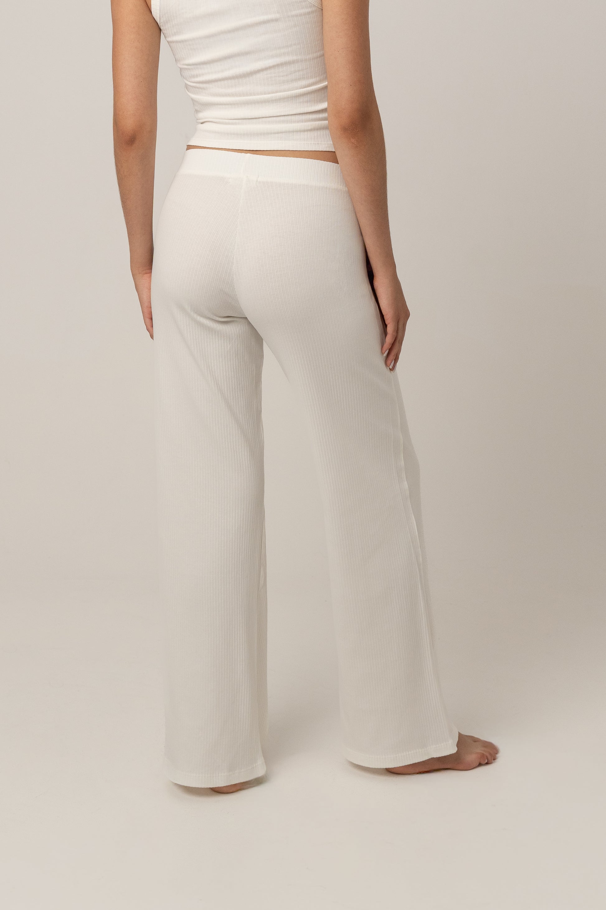 Pantalón largo de algodón canalé suave, con corte relajado y cinturilla elástica.